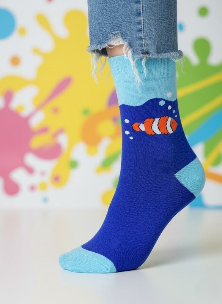Enerjik Stil: Balık desenimizin canlı renkleri ve eğlenceli motifleri ile ruh halinizi anında yükseltin. İster görünür ister ayakkabının içinde olsun, her anınıza pozitif bir hava katın.