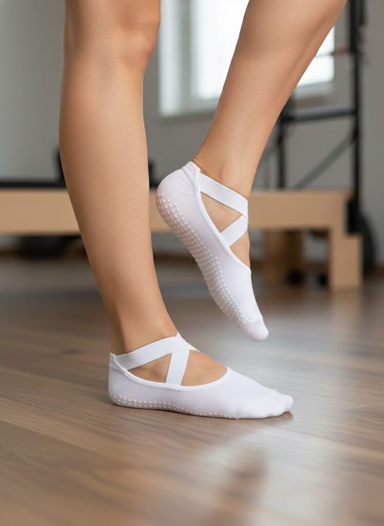 Stüdyoda hem şıklığınızı hem de güvenliğinizi koruyun! Ayağın üst kısmını açıkta bırakan zarif çapraz bant tasarımı ile maksimum hareket özgürlüğü sunar. %80 Pamuk içeriğiyle ayaklarınızın nefes almasını sağlarken, tüm tabanı kaplayan kaymaz silikon noktacıkları sayesinde en zorlu pozlarda bile zemine sağlam basmanızı garantiler.