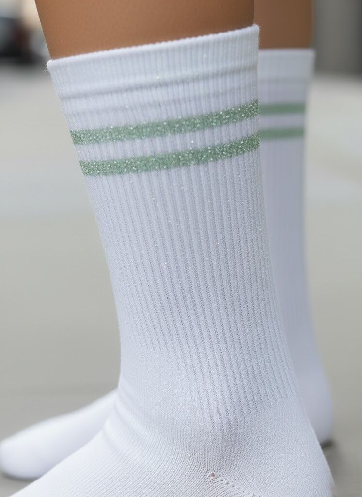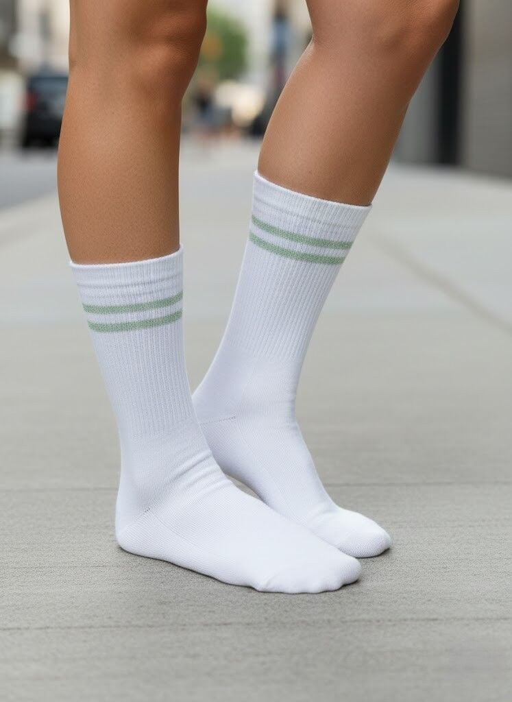 Beyaz-Yeşil (Simli) Çizgili Kolej Çorap