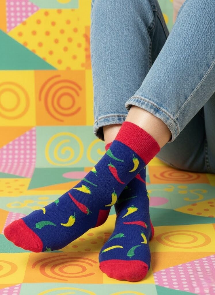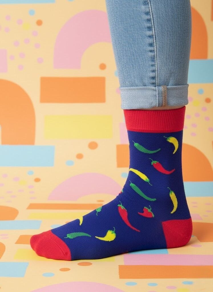 Enerjik Stil: Biber desenimizin canlı renkleri ve eğlenceli motifleri ile ruh halinizi anında yükseltin. İster görünür ister ayakkabının içinde olsun, her anınıza pozitif bir hava katın.