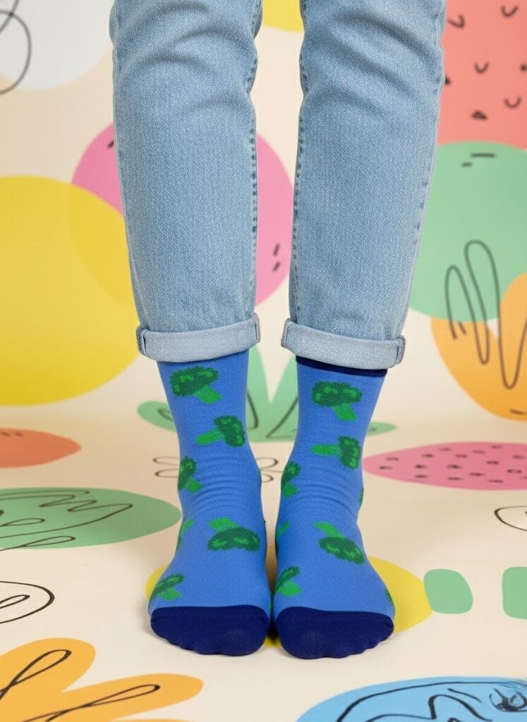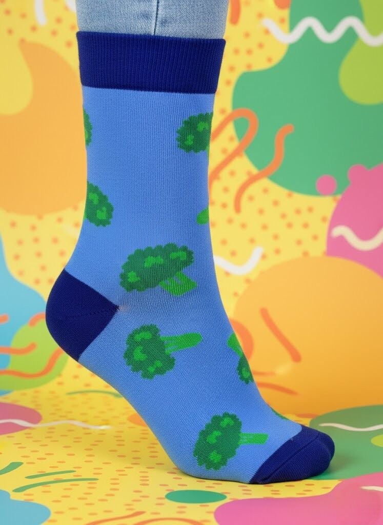 Enerjik Stil: Brokoli desenimizin canlı renkleri ve eğlenceli motifleri ile ruh halinizi anında yükseltin. İster görünür ister ayakkabının içinde olsun, her anınıza pozitif bir hava katın.