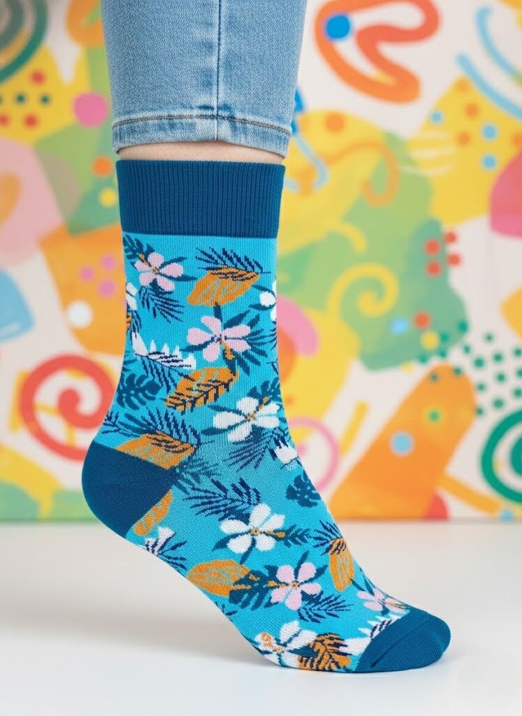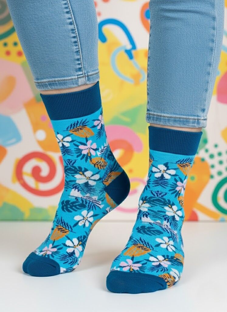 Enerjik Stil: Çiçek desenimizin canlı renkleri ve eğlenceli motifleri ile ruh halinizi anında yükseltin. İster görünür ister ayakkabının içinde olsun, her anınıza pozitif bir hava katın.