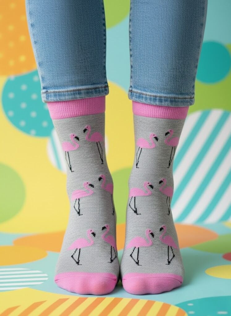 Enerjik Stil: Devekuşu desenimizin canlı renkleri ve eğlenceli motifleri ile ruh halinizi anında yükseltin. İster görünür ister ayakkabının içinde olsun, her anınıza pozitif bir hava katın.