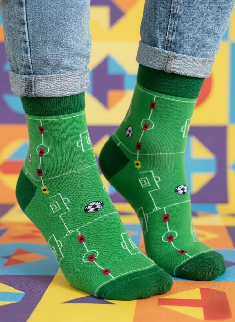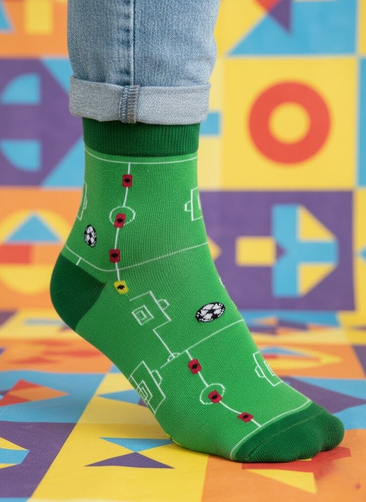 Enerjik Stil: Futbol Saha desenimizin canlı renkleri ve eğlenceli motifleri ile ruh halinizi anında yükseltin. İster görünür ister ayakkabının içinde olsun, her anınıza pozitif bir hava katın.