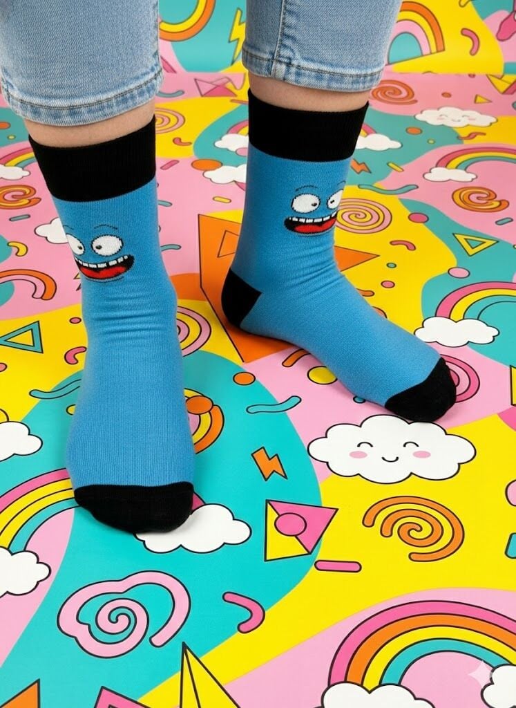 Enerjik Stil: Gülen Surat desenimizin canlı renkleri ve eğlenceli motifleri ile ruh halinizi anında yükseltin. İster görünür ister ayakkabının içinde olsun, her anınıza pozitif bir hava katın.