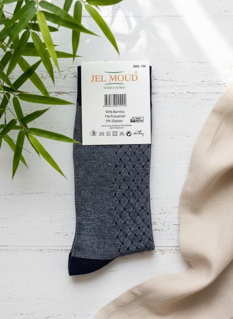 Jel Moud Lacivert Desenli Erkek Bambu Çorap