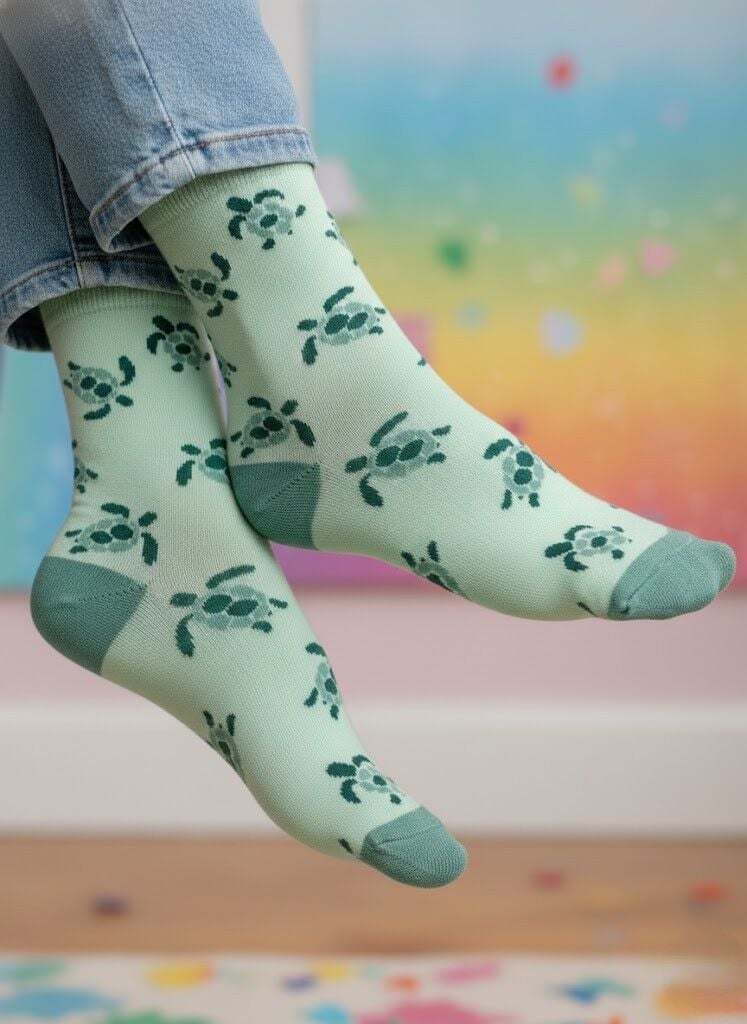 Enerjik Stil: Kaplumbağa desenimizin canlı renkleri ve eğlenceli motifleri ile ruh halinizi anında yükseltin. İster görünür ister ayakkabının içinde olsun, her anınıza pozitif bir hava katın.