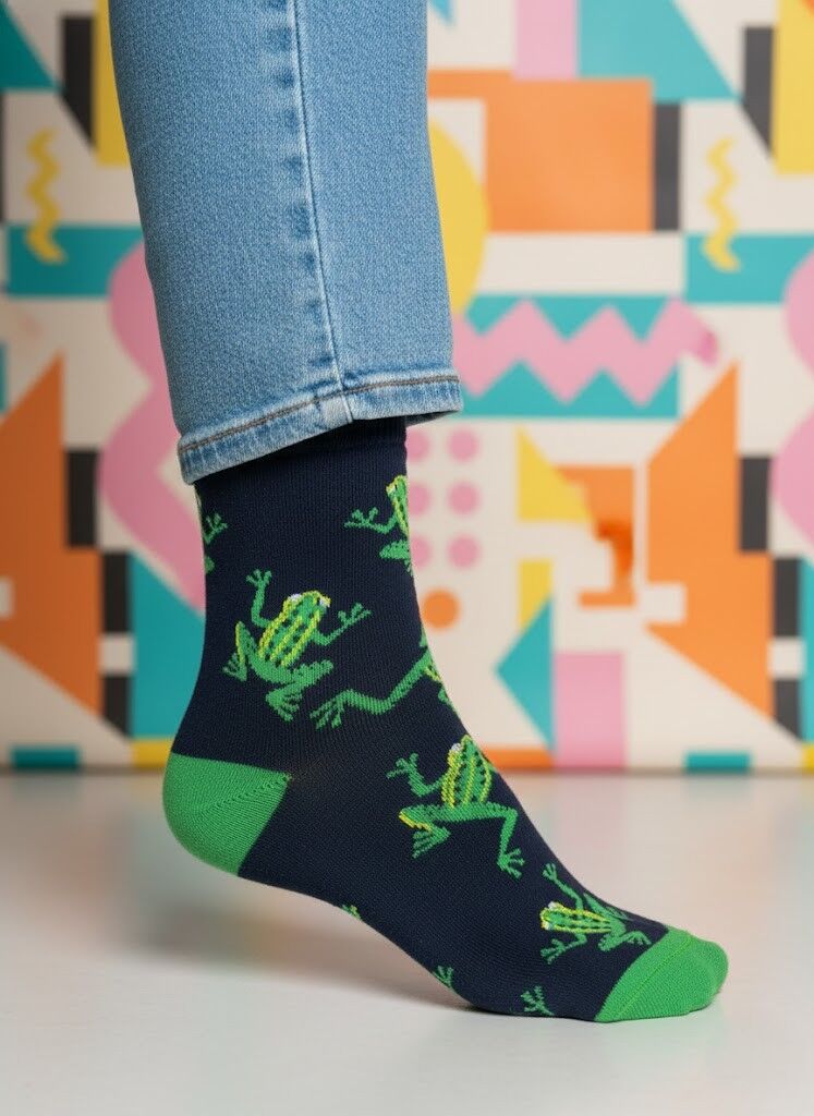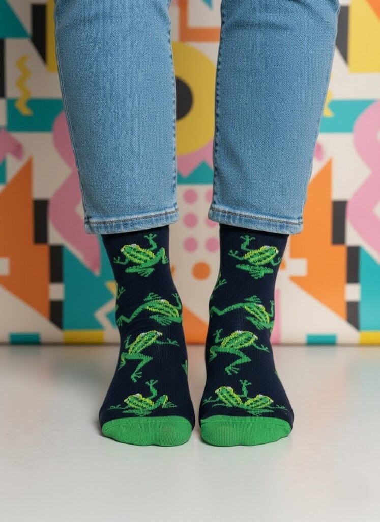 Enerjik Stil: Kurbağa desenimizin canlı renkleri ve eğlenceli motifleri ile ruh halinizi anında yükseltin. İster görünür ister ayakkabının içinde olsun, her anınıza pozitif bir hava katın.