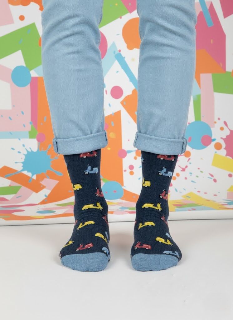 Sıradanlığa yer yok! Hayatın her anına renk katmak ve adımlarınıza enerji vermek için tasarlanan Motosiklet modelimiz ile tanışın. %80 Pamuk konforunu dikişsiz mükemmeliyet ile birleştiren bu çoraplar, sadece görünüşleriyle değil, sunduğu üstün konforla da gününüzü güzelleştirecek.