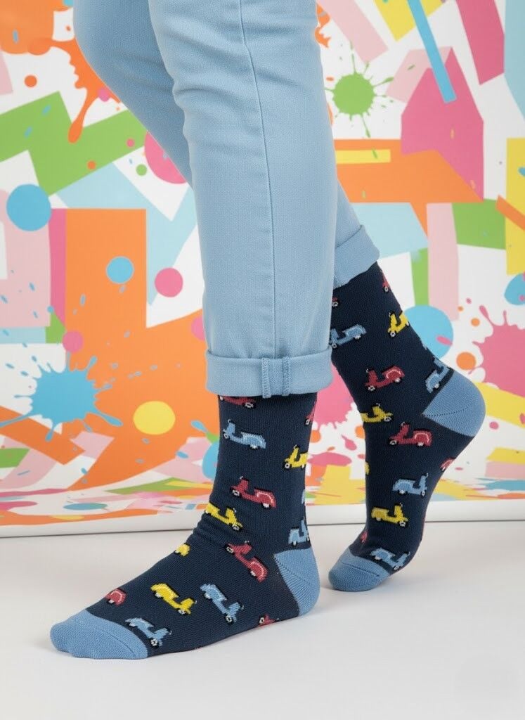 Enerjik Stil: Motosiklet desenimizin canlı renkleri ve eğlenceli motifleri ile ruh halinizi anında yükseltin. İster görünür ister ayakkabının içinde olsun, her anınıza pozitif bir hava katın.