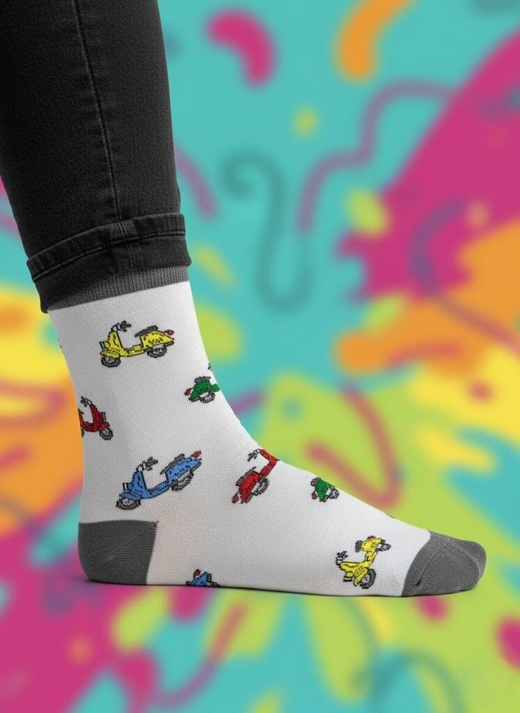 Enerjik Stil: Motosiklet desenimizin canlı renkleri ve eğlenceli motifleri ile ruh halinizi anında yükseltin. İster görünür ister ayakkabının içinde olsun, her anınıza pozitif bir hava katın.