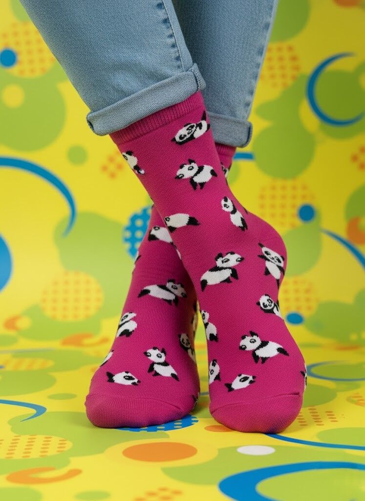 Enerjik Stil: Panda desenimizin canlı renkleri ve eğlenceli motifleri ile ruh halinizi anında yükseltin. İster görünür ister ayakkabının içinde olsun, her anınıza pozitif bir hava katın.