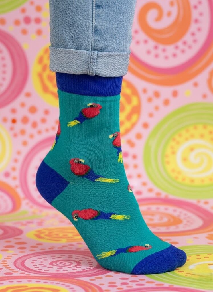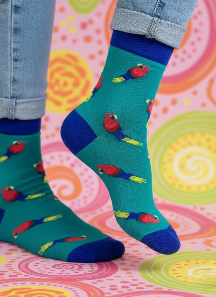 Enerjik Stil: Papağan desenimizin canlı renkleri ve eğlenceli motifleri ile ruh halinizi anında yükseltin. İster görünür ister ayakkabının içinde olsun, her anınıza pozitif bir hava katın.