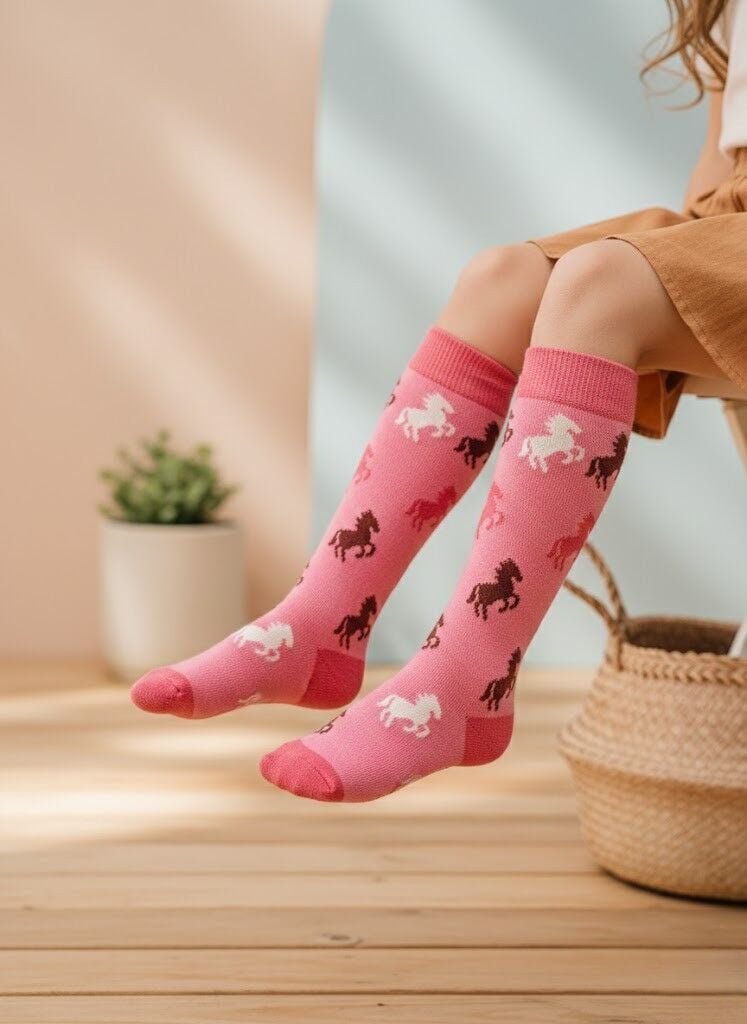 Pembe At Desenli Çocuk Dizaltı Çorap