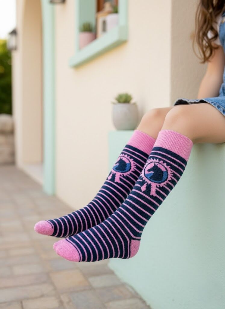 Pembe Çizgili At Desenli Çocuk Dizaltı Çorap