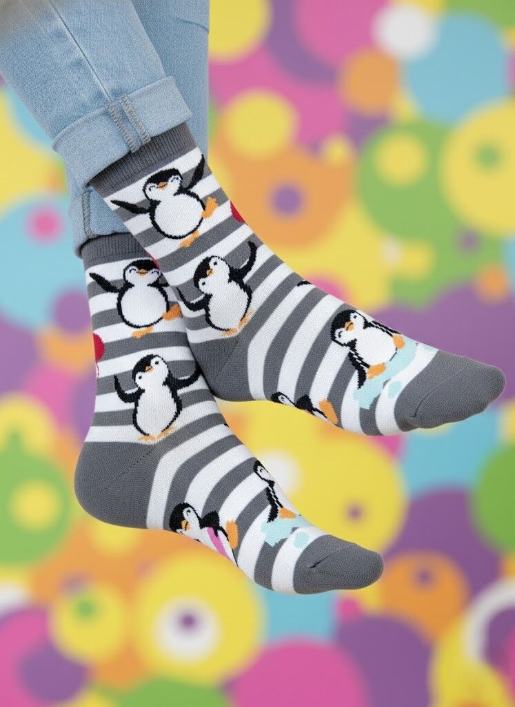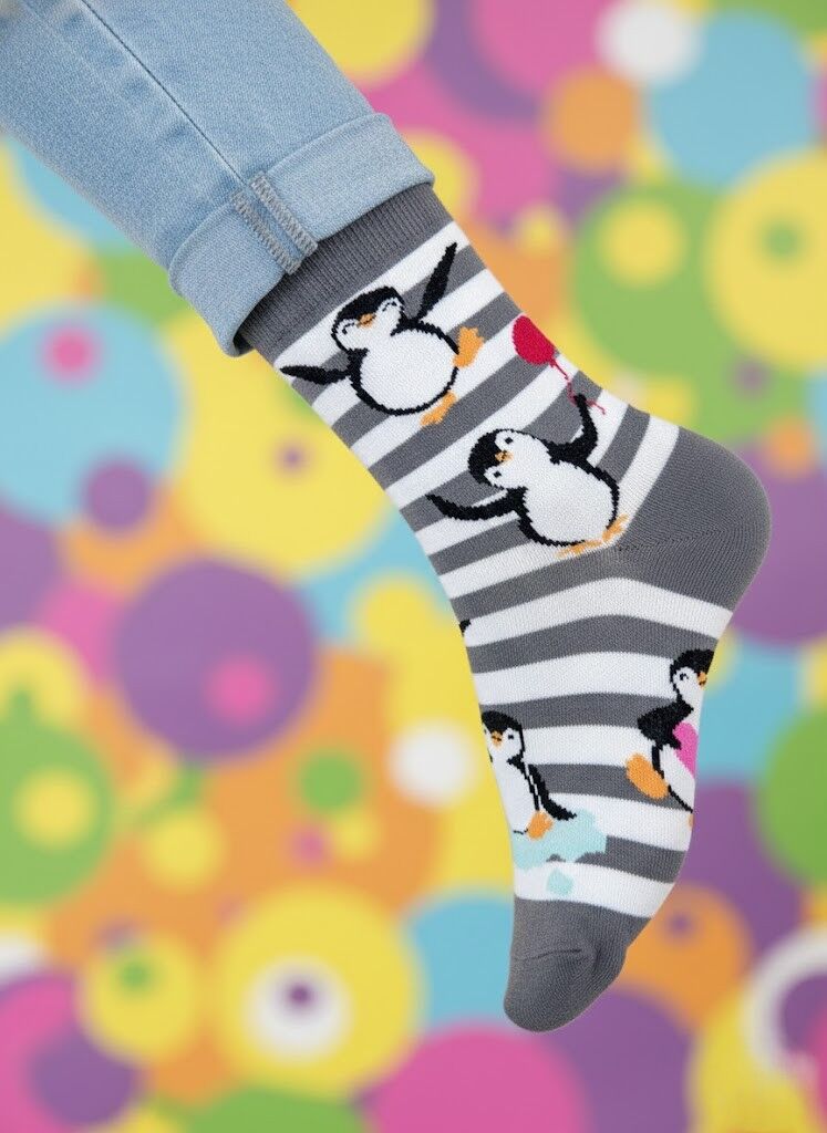 Enerjik Stil: Penguen desenimizin canlı renkleri ve eğlenceli motifleri ile ruh halinizi anında yükseltin. İster görünür ister ayakkabının içinde olsun, her anınıza pozitif bir hava katın.
