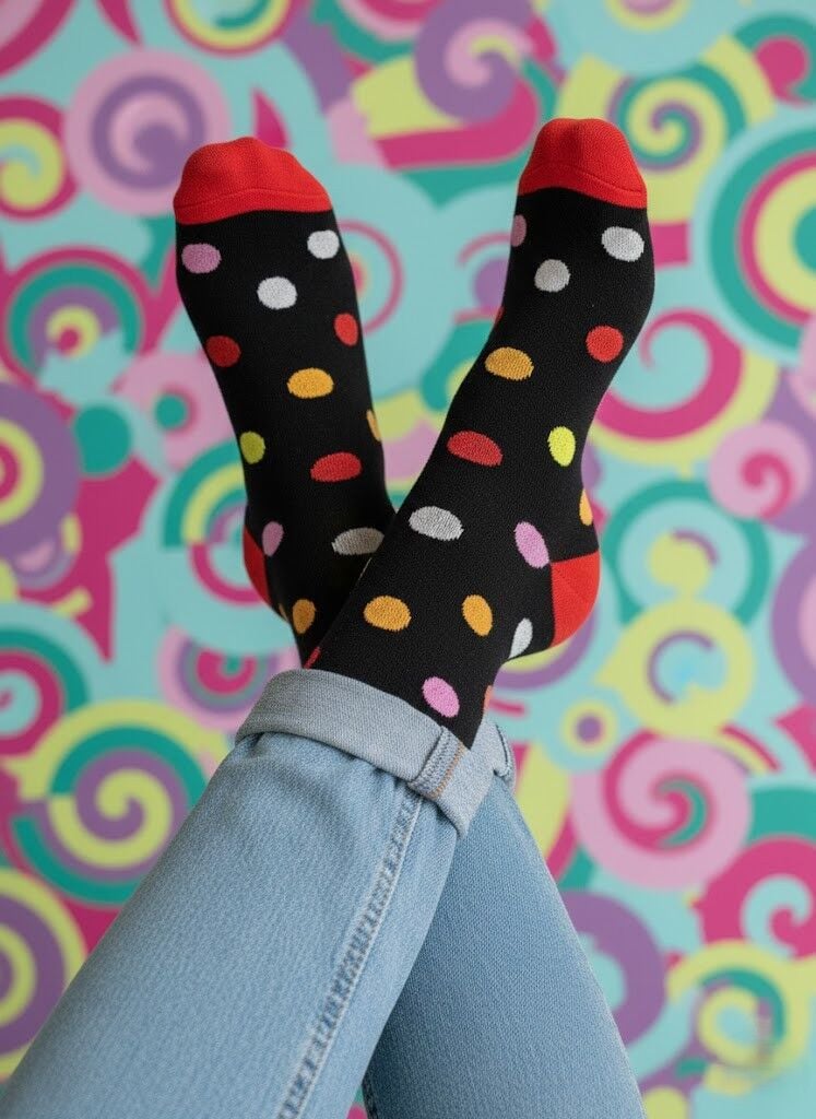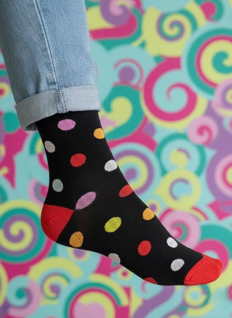 Enerjik Stil: Puantiye desenimizin canlı renkleri ve eğlenceli motifleri ile ruh halinizi anında yükseltin. İster görünür ister ayakkabının içinde olsun, her anınıza pozitif bir hava katın.