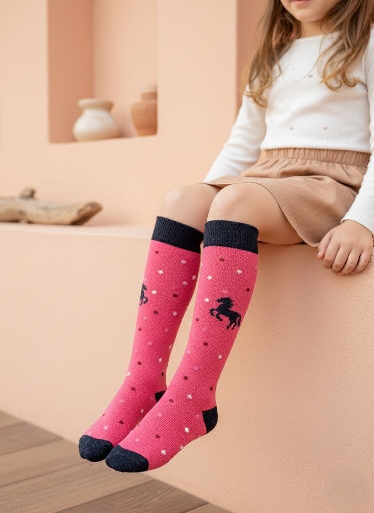 Puantiyeli At Desenli Çocuk Dizaltı Çorap