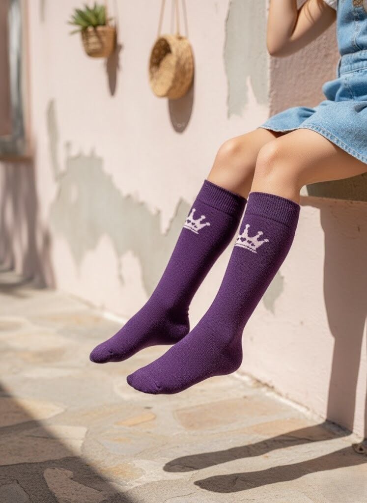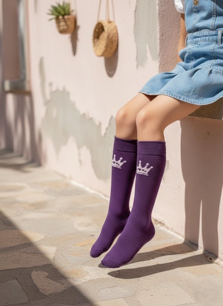 Taç Desenli Çocuk Dizaltı Çorap