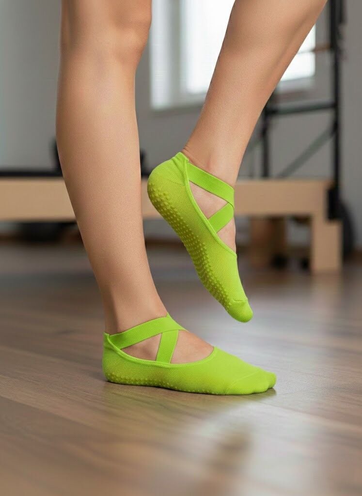 Stüdyoda hem şıklığınızı hem de güvenliğinizi koruyun! Ayağın üst kısmını açıkta bırakan zarif çapraz bant tasarımı ile maksimum hareket özgürlüğü sunar. %80 Pamuk içeriğiyle ayaklarınızın nefes almasını sağlarken, tüm tabanı kaplayan kaymaz silikon noktacıkları sayesinde en zorlu pozlarda bile zemine sağlam basmanızı garantiler.